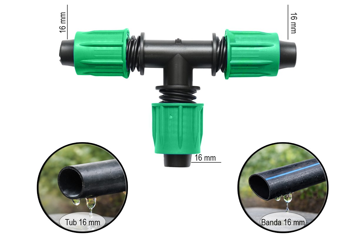 Teu conector stut egal tub picurare 16x16x16mm pentru sisteme de irigatii